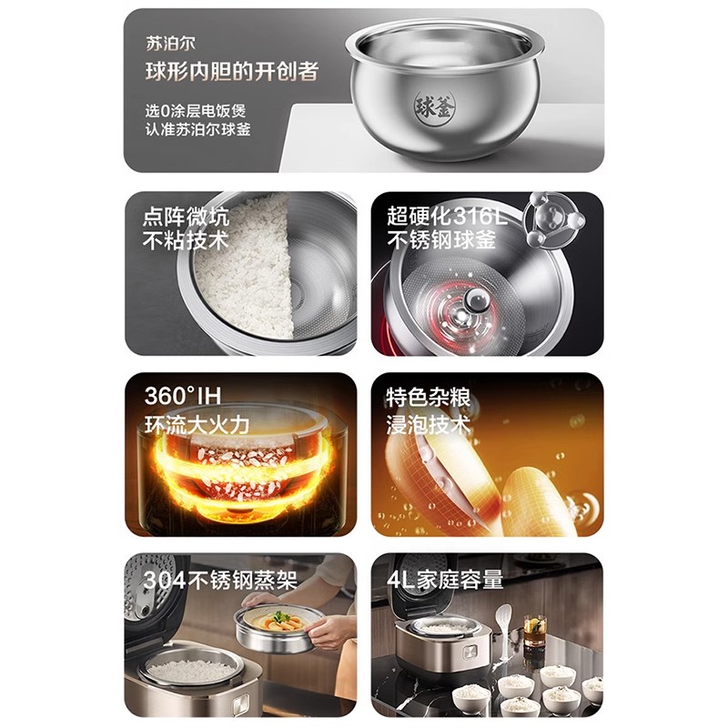 苏泊尔电饭煲家用IH电磁球形釜3到4人多功能正品 煮饭锅电饭锅 新款