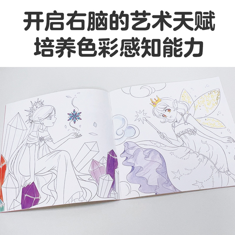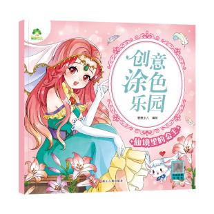 墨点 公主涂色画本绘画册画画本公主换装 爱德少儿 仙境里 涂色女孩儿童趣味卡通涂色画 创意涂色乐园