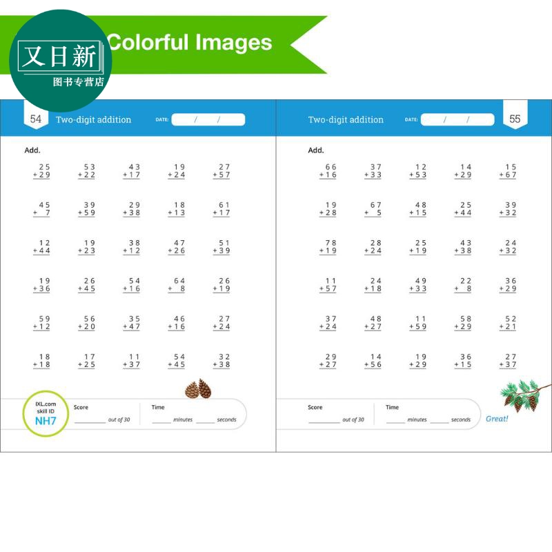 Fluency Addition 进口图书 又日? IXL 英文原版 Workbook Facts 加法口诀练习册 美国IXL教辅 Grade 小学数学学习 二年级