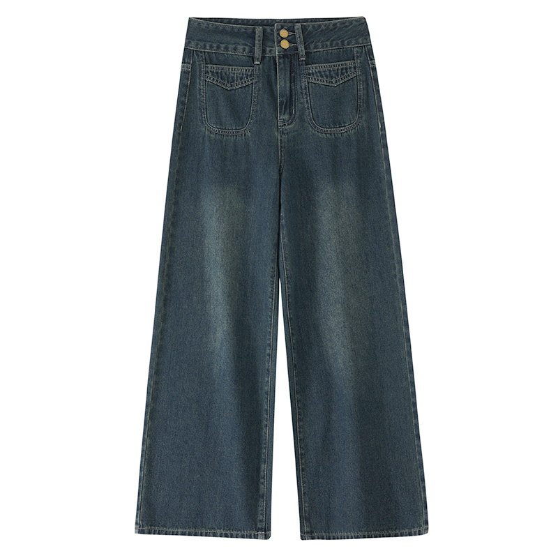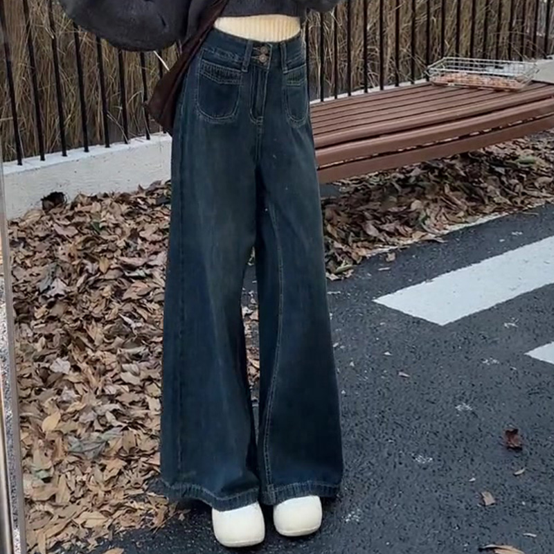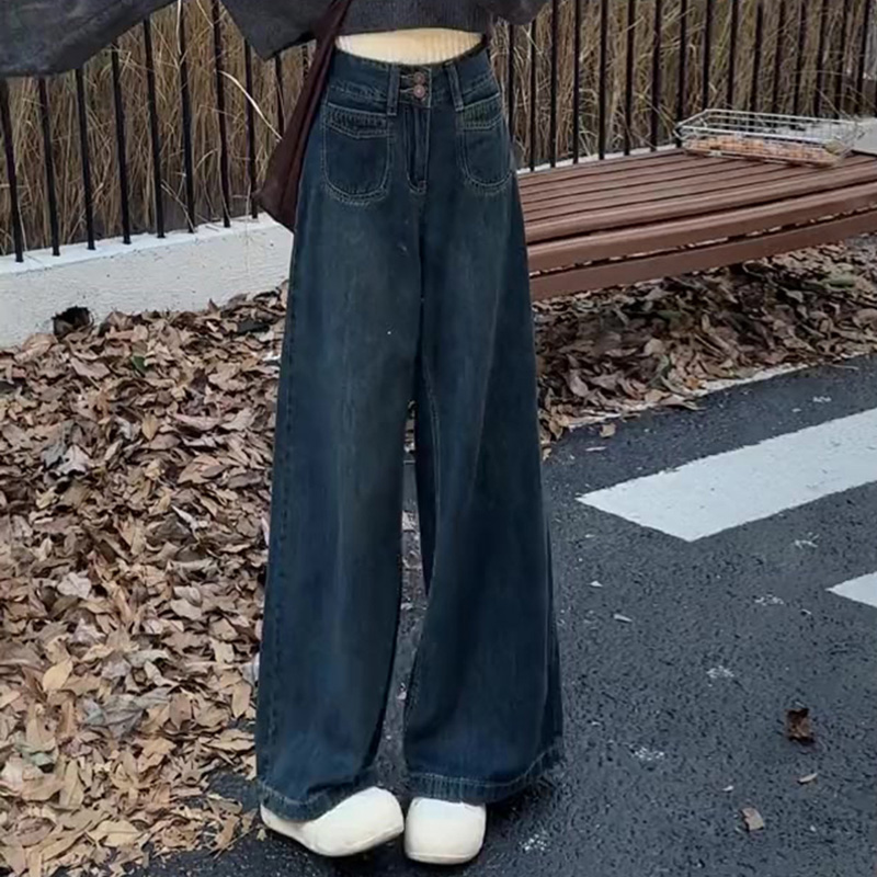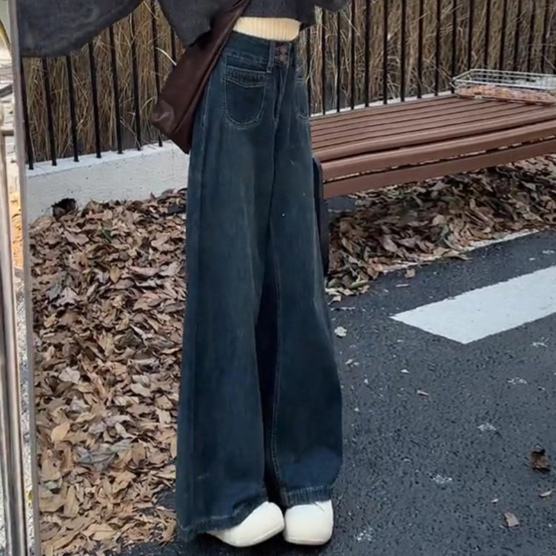 小个子九分裤 betu百图深蓝色宽松牛仔裤 新款 2025年秋季 女阔腿裤
