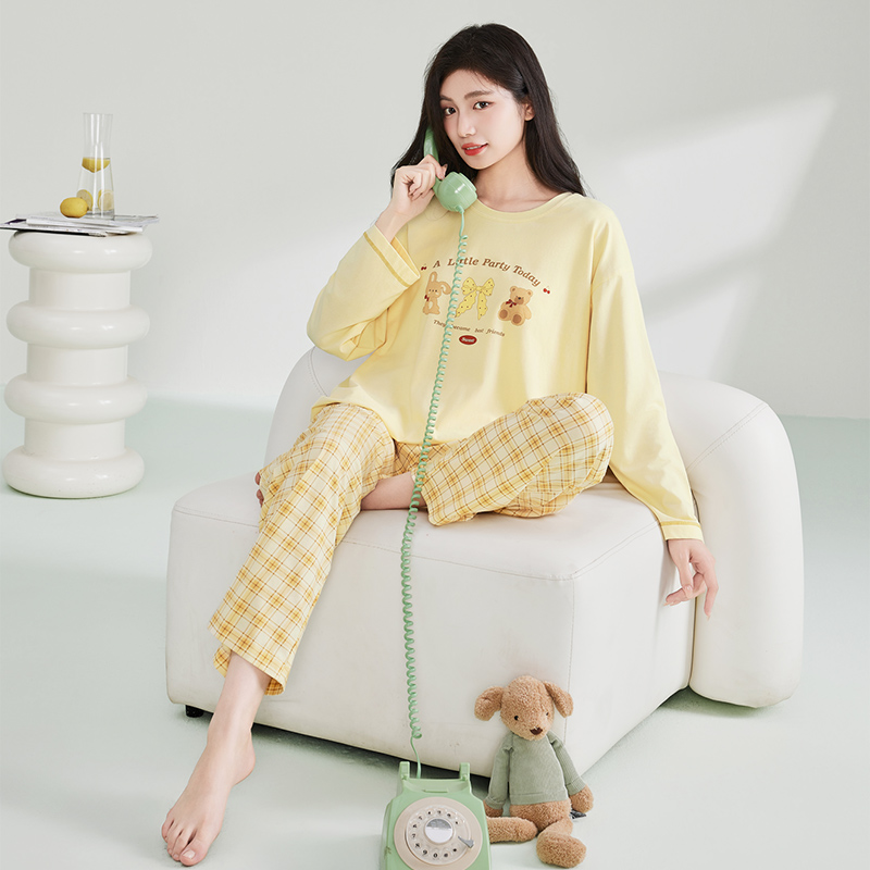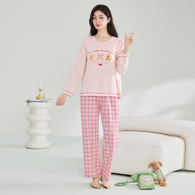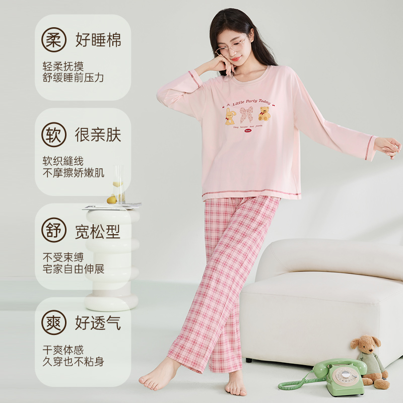 圆领套头家居服套装 带胸垫长袖 春秋 2025新款 玛伦萨纯棉睡衣女款