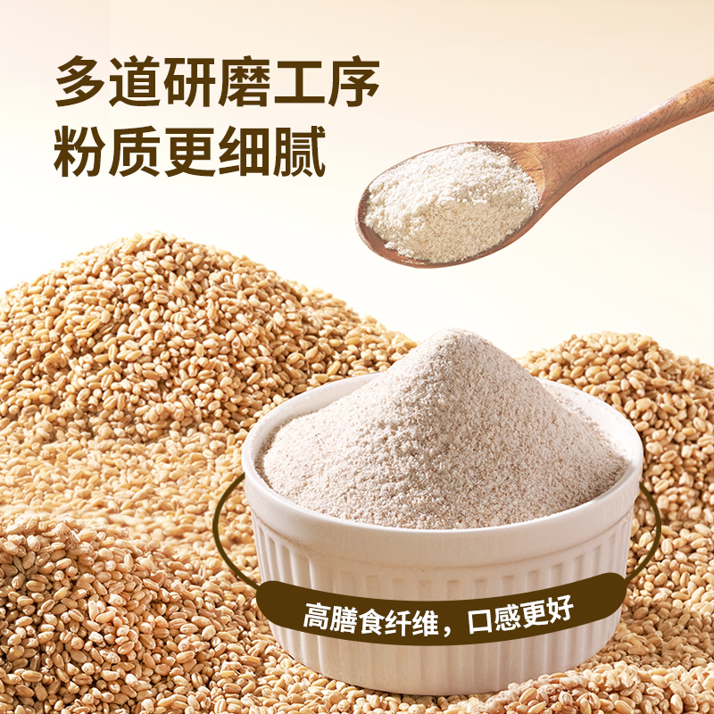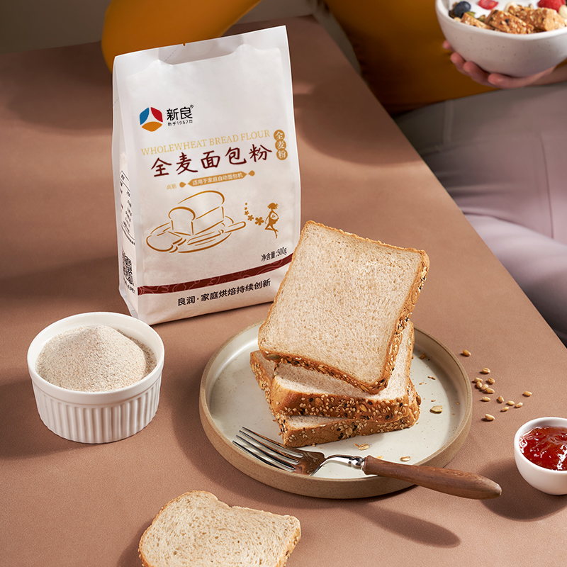 新良全麦面包粉500g 2全麦高筋粉含麦麸粗粮吐司专用面粉烘焙原料