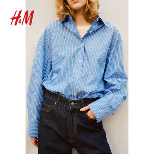 新款 衬衣2025秋冬季 女宽松蓝色上衣内搭 长袖 阔色黄色条纹翻领衬衫
