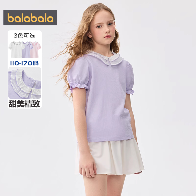 新款 巴拉巴拉女童短袖 夏装 上衣儿童打底衫 T恤大童宝宝洋气泡泡袖