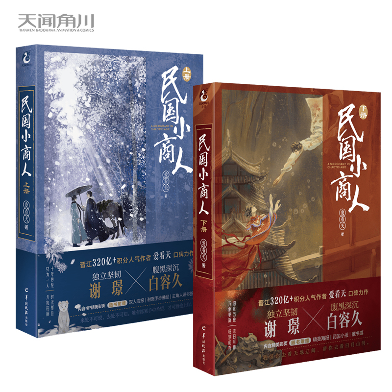 全2册 晋江作者爱看天双男主民国商战题材力作 谢璟手抄佛经 现货正版 主角人设书签 双人海报 民国小商人 藏书票 赠民国小报