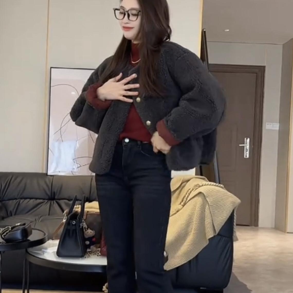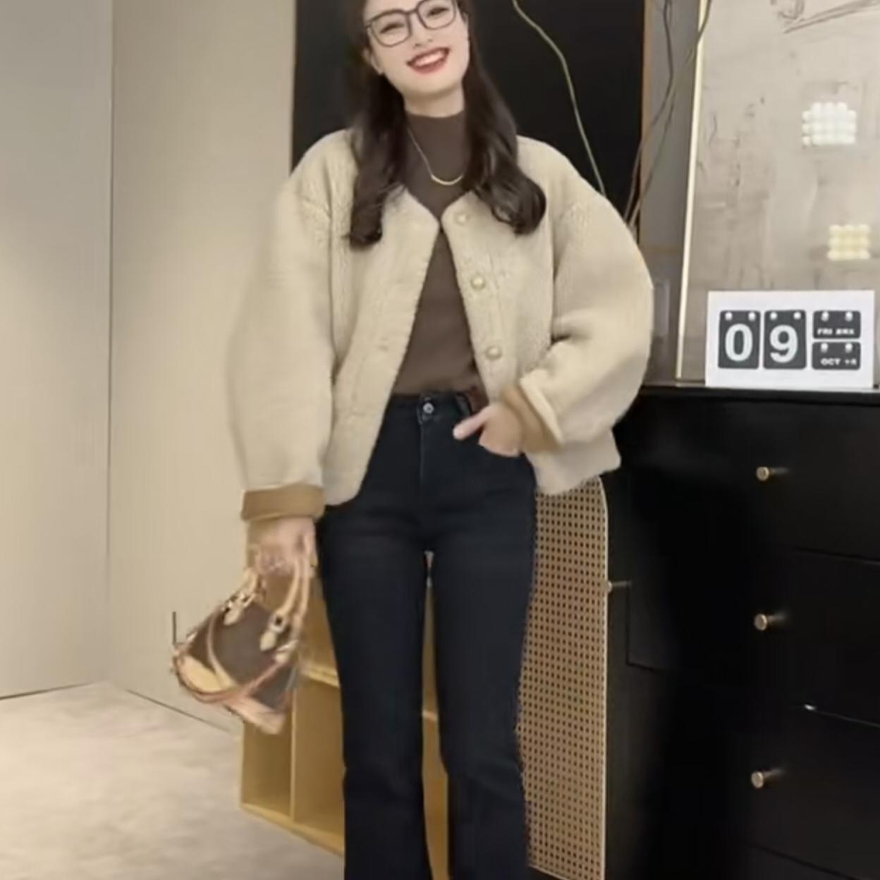 加厚保暖皮毛一体 小个子时尚 韩版 麂皮绒羊羔毛外套女2025秋冬新款