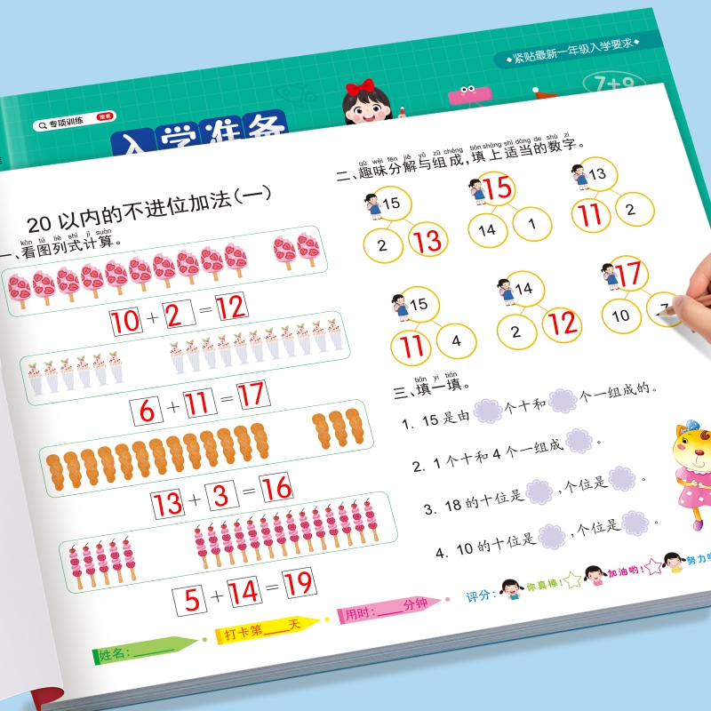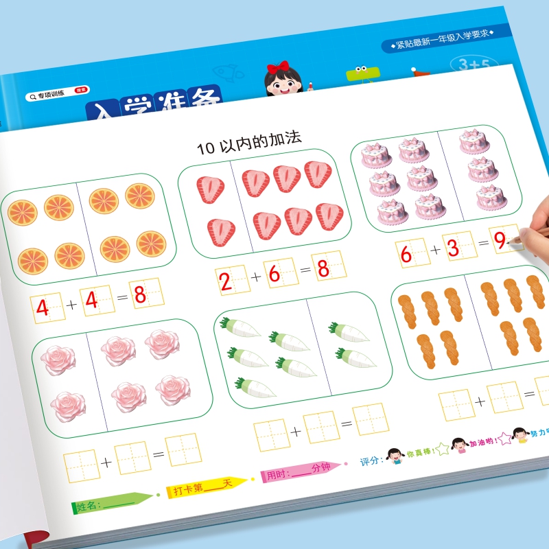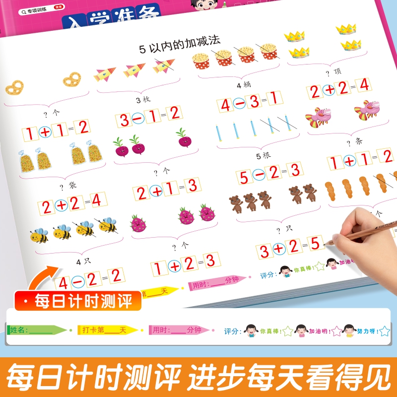 幼小衔接教材全套一日一练每日打卡大练习拼音数学语言全一册声母韵母整体认读拼读拼写专项练习册5 20以内加减法天天练算术本