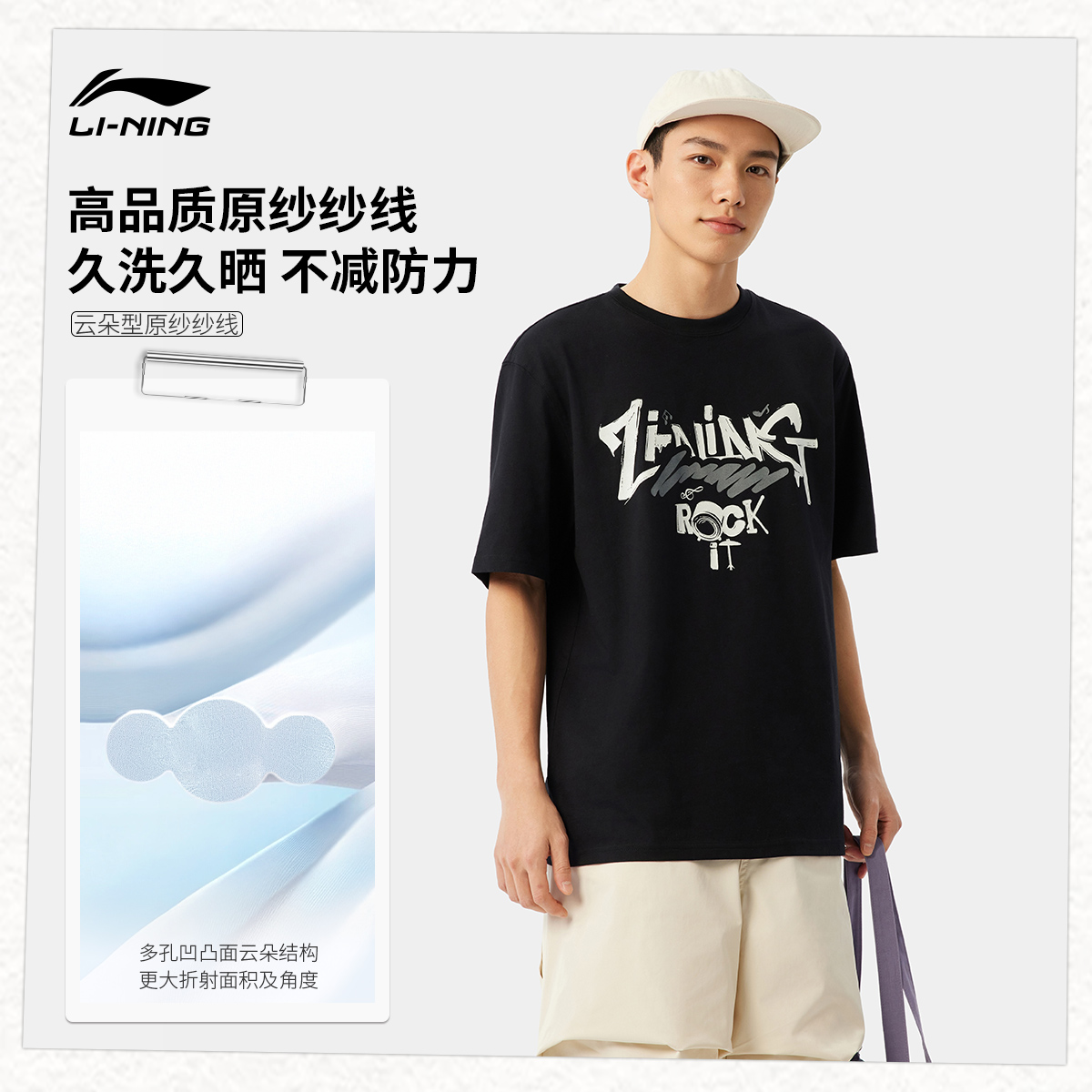 男士 运动上衣男装 夏季 情侣装 体恤宽松白色T恤女 官方半袖 李宁短袖