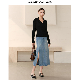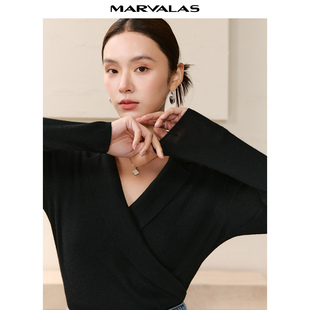 2025秋季 上衣设计感套头衫 新款 短款 女 修身 曼德诗100%绵羊毛针织衫