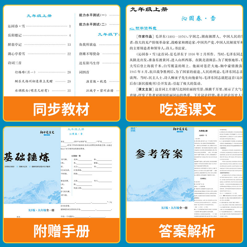 2026新版 初一二三上下册课内外古诗文阅读训练注译赏析 通成学典初中文言文全解全练一本通七7年级八8年级九9年级全一册部编人教版