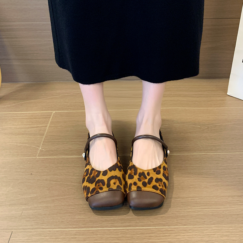 仙女风瓢鞋 秋季 浅口百搭中跟奶奶鞋 大码 真皮单鞋 女鞋 粗跟2025新款