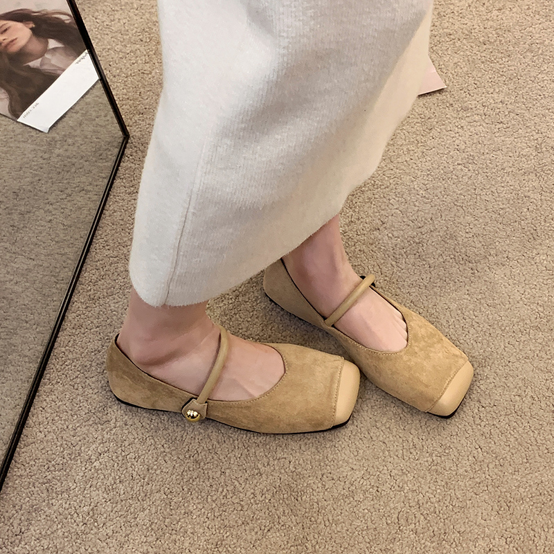 绝美气质通勤平底鞋 小个子内增高裸色方扣浅口单鞋 女2025春夏新款
