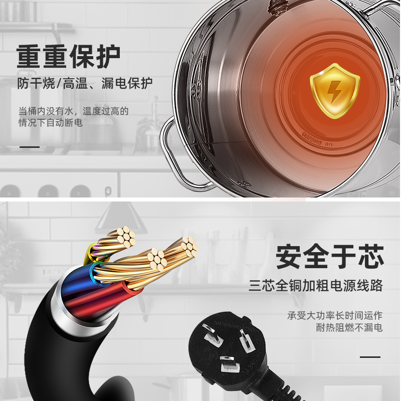 304电热桶烧水桶不锈钢保温商用家用大容量一体开水插电食品级