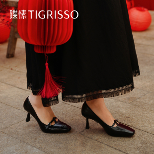 TA54537 剧院玫瑰 单鞋 羊皮高跟鞋 蹀愫2025年红色T带玛丽珍鞋