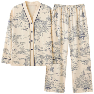 纯棉长袖 家居服套装 春秋款 夏2025年新款 冬 全棉秋冬开衫 睡衣女秋季
