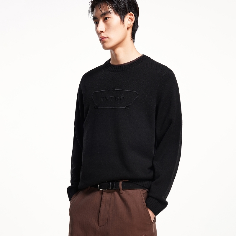 HLA 25秋新印花黑色假两件毛衣男 海澜之家轻商务含羊毛双领针织衫