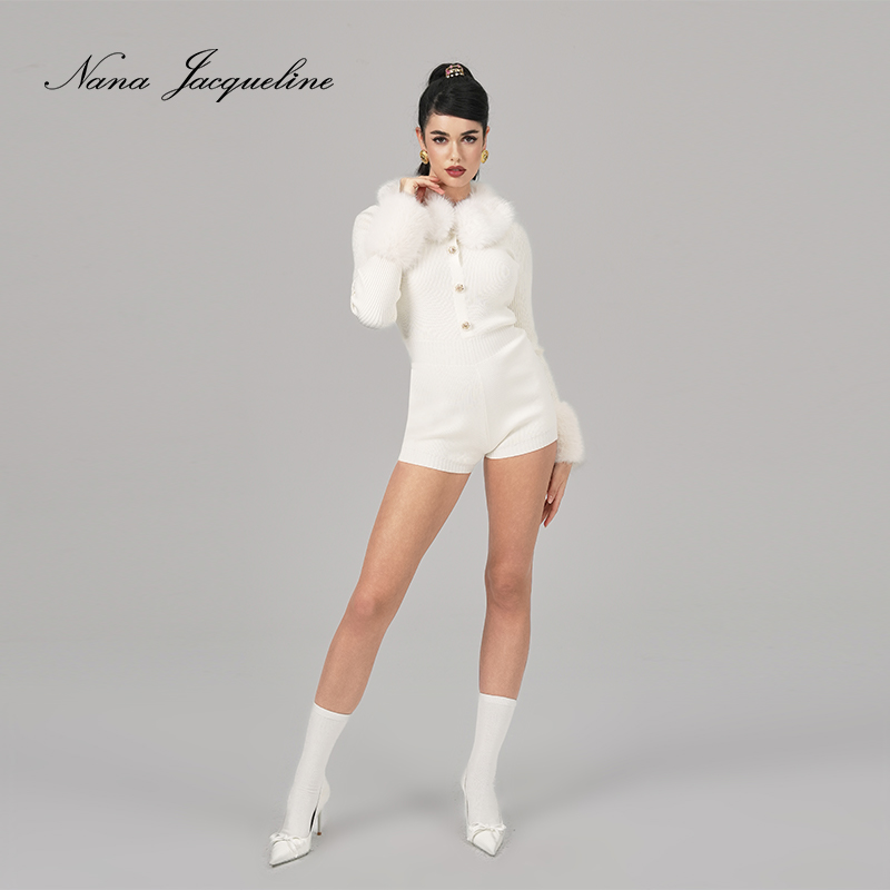 NanaJacqueline复古运动可拆卸毛毛领针织连体裤 女毛线扣温柔气质