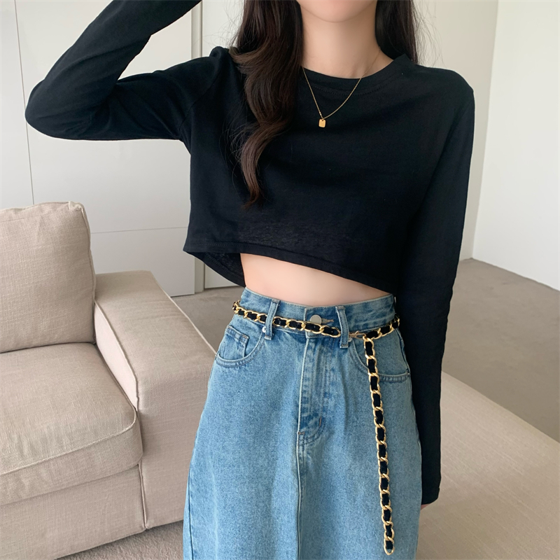 纯色短款 ins潮搭内搭显瘦宽松打底衫 上衣服 T恤女春秋新款 超火长袖