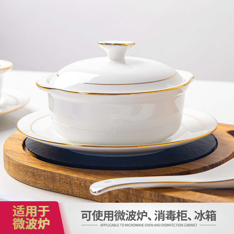 景德镇骨瓷隔水小炖盅一人位燕窝碗汤碗带盖陶瓷双耳碗汤盅蒸蛋碗