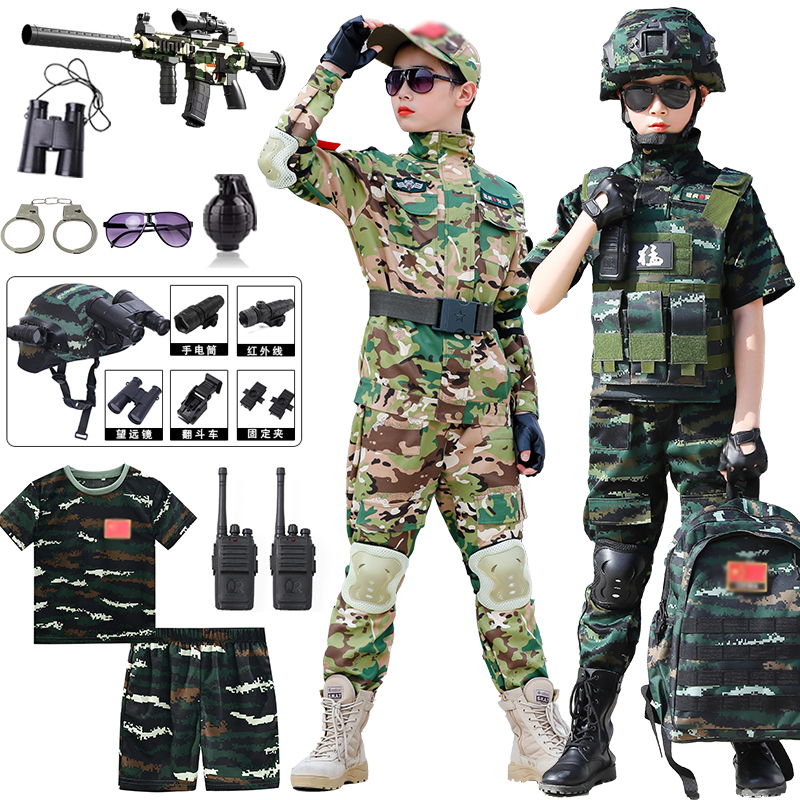 儿童迷彩服套装 军训体能服男女童小制服表演服夏 男童户外对战套装