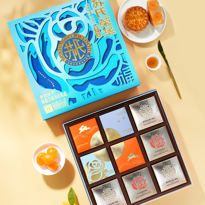 双黄白莲蓉月饼2025新款 907.5g 苏氏荣华月饼_海蓝之星礼盒装