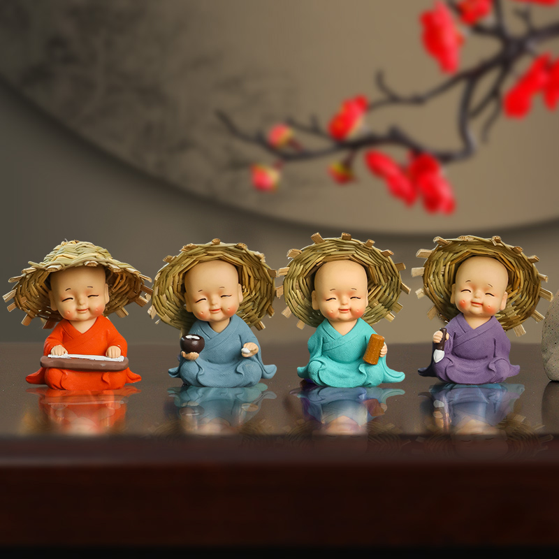 创意可爱四不小和尚茶宠摆件家居客厅茶几茶台办公室桌面装 饰品