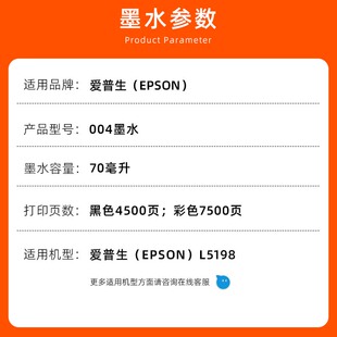 L3256 喷墨打印 L3115 墨水适用L3251 L3253 3116 L326X L3258 3119 爱普生Epson004原装 L1119 3118 L3108