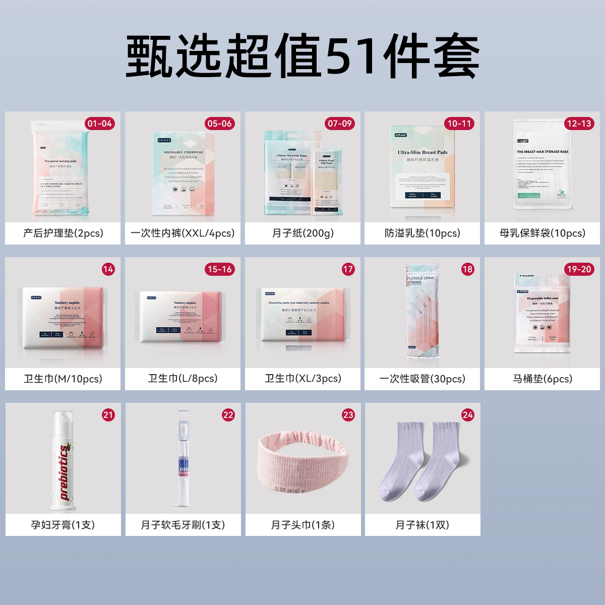 嫚熙待产包入院母子全套组合豪华礼盒装 孕产妇产后实用用品51件套
