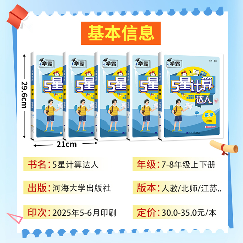 2025秋计算达人能手七八九年级数学英语语文上下册人教版 苏科北师初一二七八九同步练习题学霸计算专项强化训练口算计算题天天练七