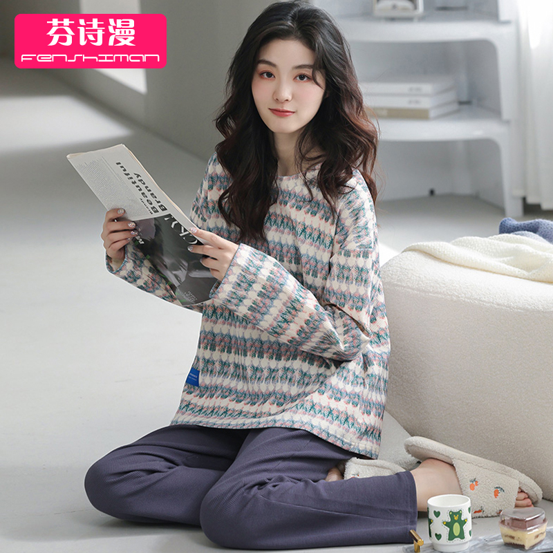 少女可外穿家居服 套装 马克公主睡衣女春秋新款 多巴胺可爱纯棉长袖