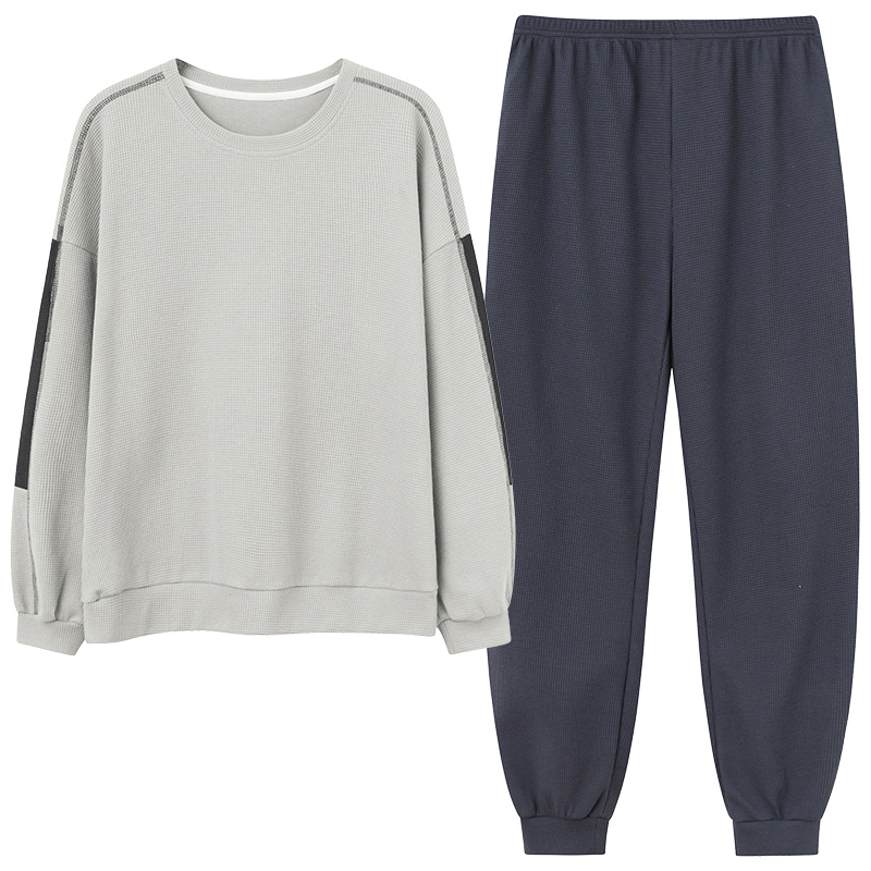 简约全棉高级感可外穿圆领家居服套装 春秋款 睡衣男士 猫人纯棉长袖