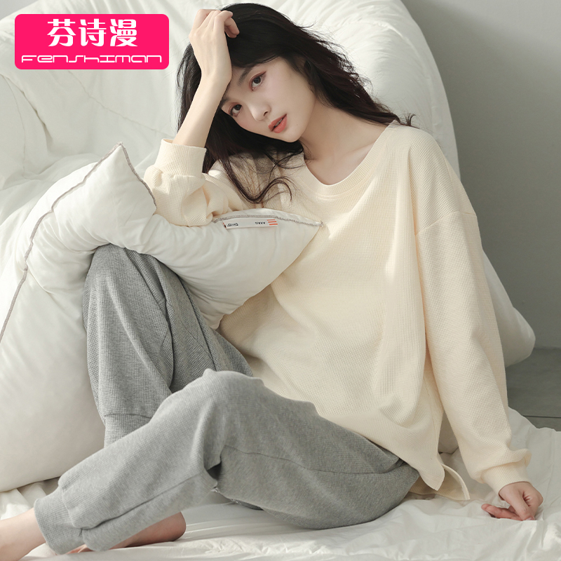 长袖 带杯带胸垫秋季 男纯棉睡衣女新款 蕉内棉棉301Home家居服套装