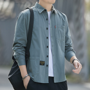 新款 春秋季 复古工装 灯芯绒夹克外套长袖 衬衣 回力衬衫 男士 外套男款