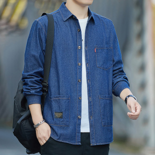 日系水洗复古潮牌痞帅工装 男2025秋季 衬衣外套 牛仔衬衫 hansca长袖