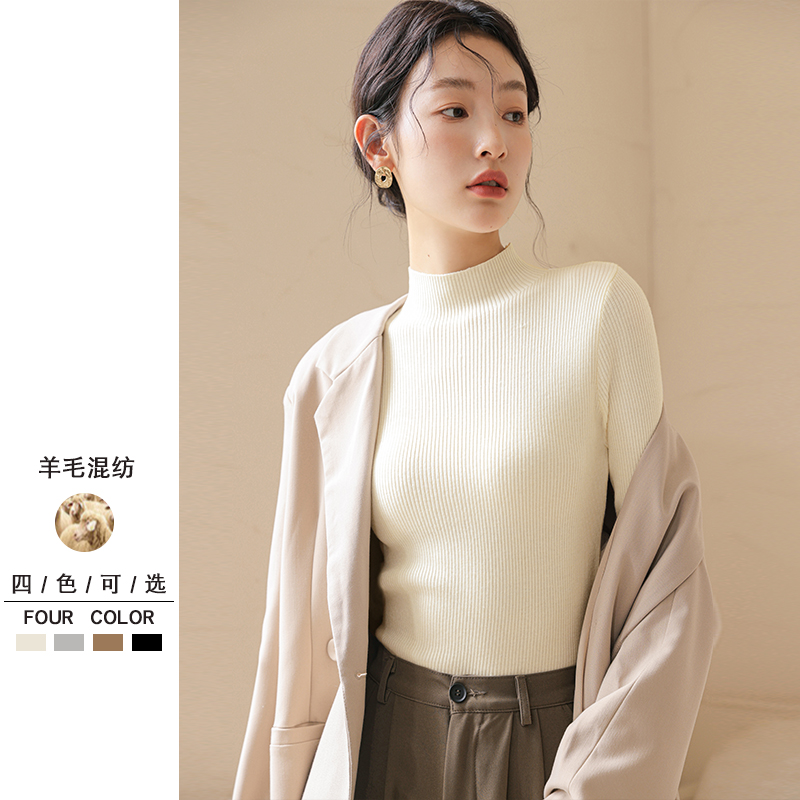 羊毛上衣 2025新款 打底衫 女半高领黑色内搭高级感秋冬针织毛衣女装
