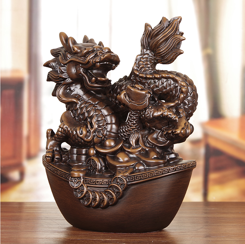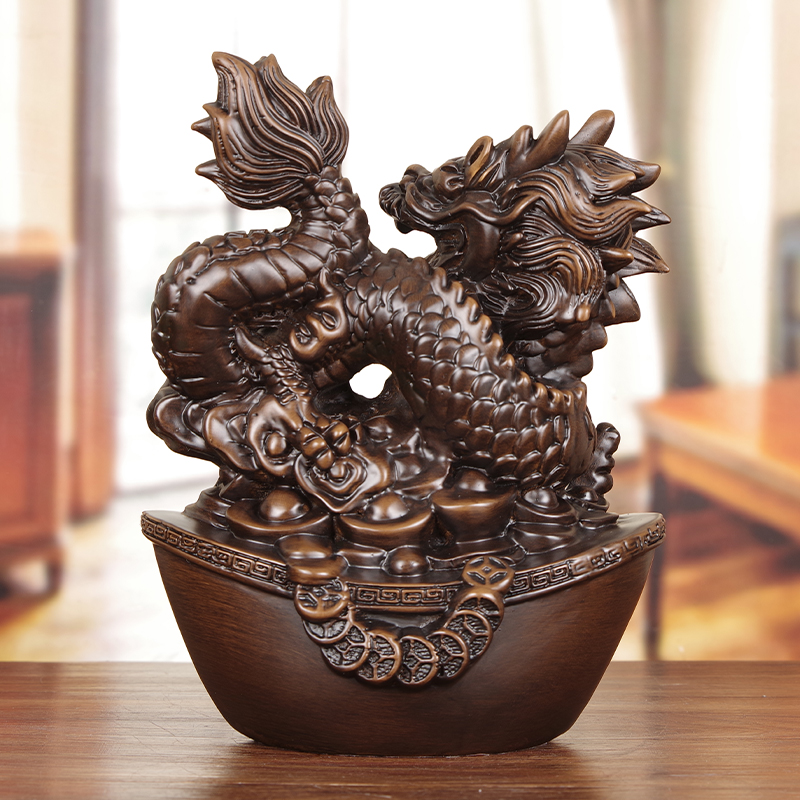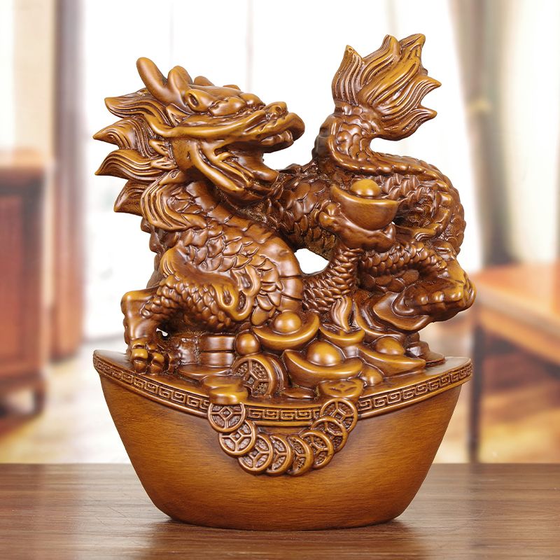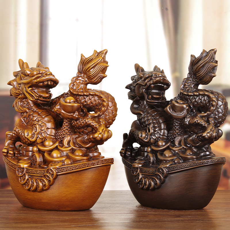 实木招财生肖龙摆件客厅酒柜博古架中式 饰家居生日工艺礼品 祥龙装