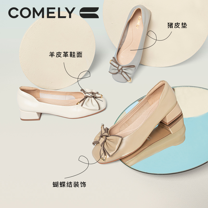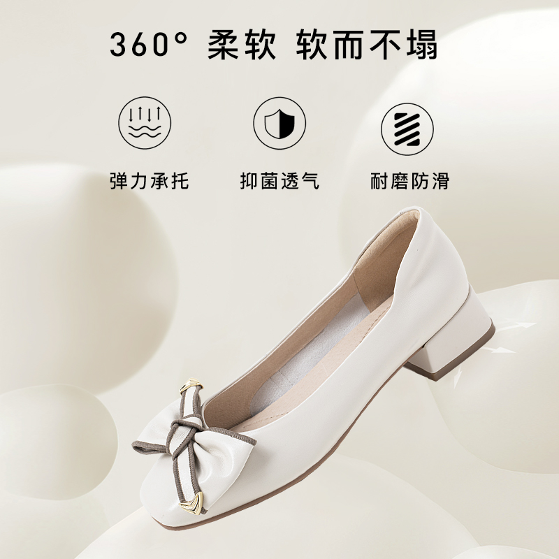 新款 女鞋 女士温柔蝴蝶结浅口单鞋 淑女平底单鞋 法式 热风2025年夏季