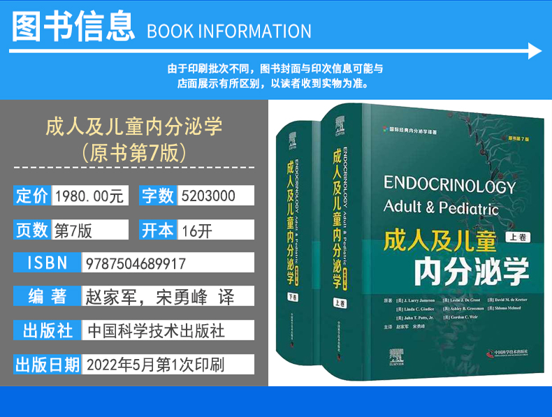 内分泌原理和激素信号 肥胖厌食症和营养 糖尿病 成人及儿童内分泌学 宋勇峰 上下卷 赵家军 中国科学技术9787504689917 原书第7版