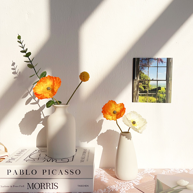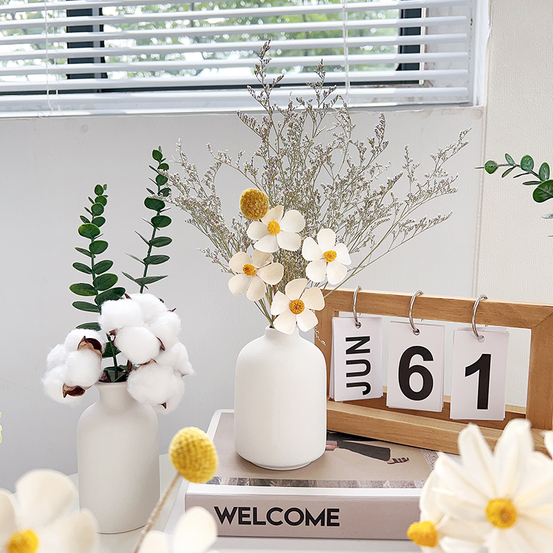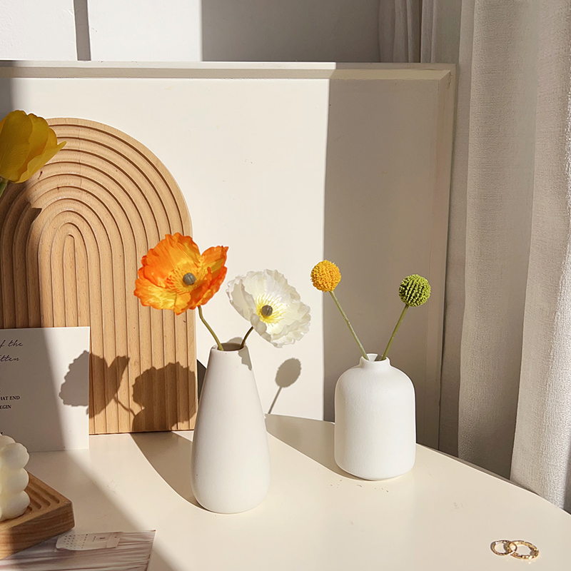 ins仿真花拍照氛围道具白色陶瓷花瓶简约网红摄影背景布置博主直播假花摆件装 饰花卉迷你小瓶子粗胚插花瓶