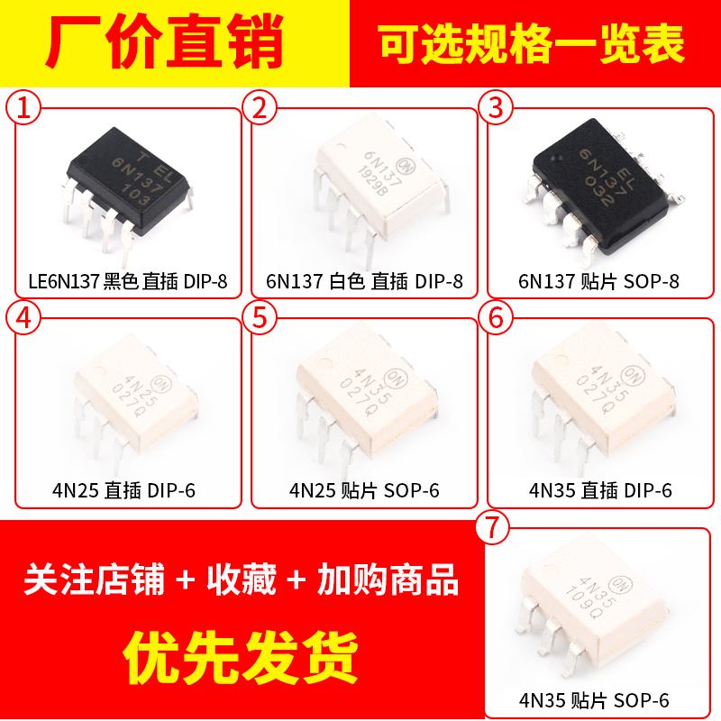 光电耦合器直插 6N137 高速光耦隔离器 4N35 贴片IC芯片 4N25