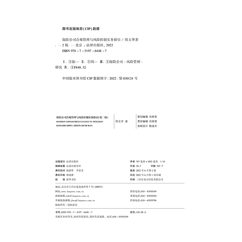 保险公司合规管理与风险控制实务指引 保险诉讼争议解决法律出版 第二版 保险行业企业合规管理 社9787519764487 周玉华著 2022新书