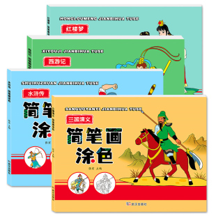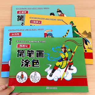简笔画涂色画四大名著西游记水浒传红楼梦三国演义儿童画画本12345 6岁宝宝学画书籍早教益智涂颜色绘本绘画幼儿手绘本教材幼儿园