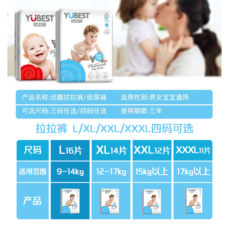 XXL XXXL婴儿男女宝宝尿不湿夏 婴儿L码 优贝舒超薄透气拉拉裤