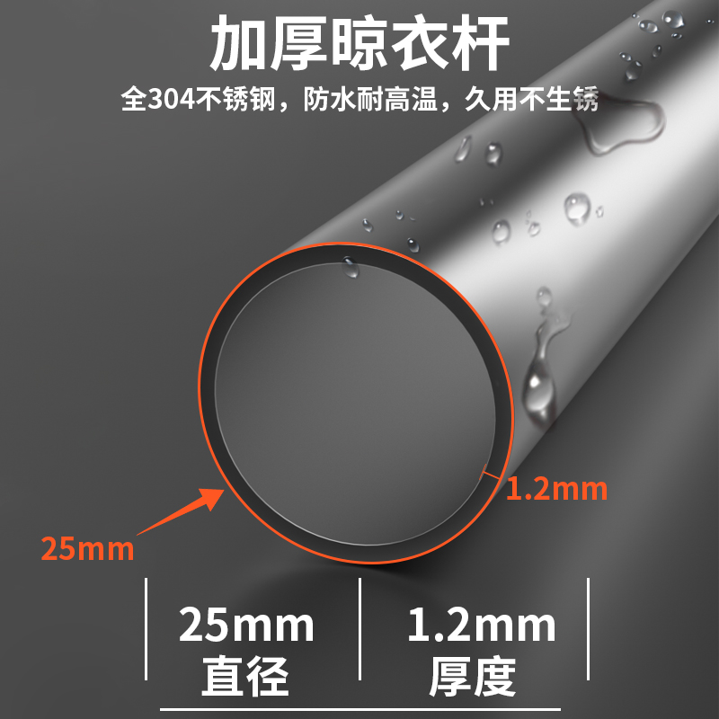 晾衣杆阳台顶装 晾衣架304不锈钢晒衣架晾衣服凉衣架单杆子 固定式