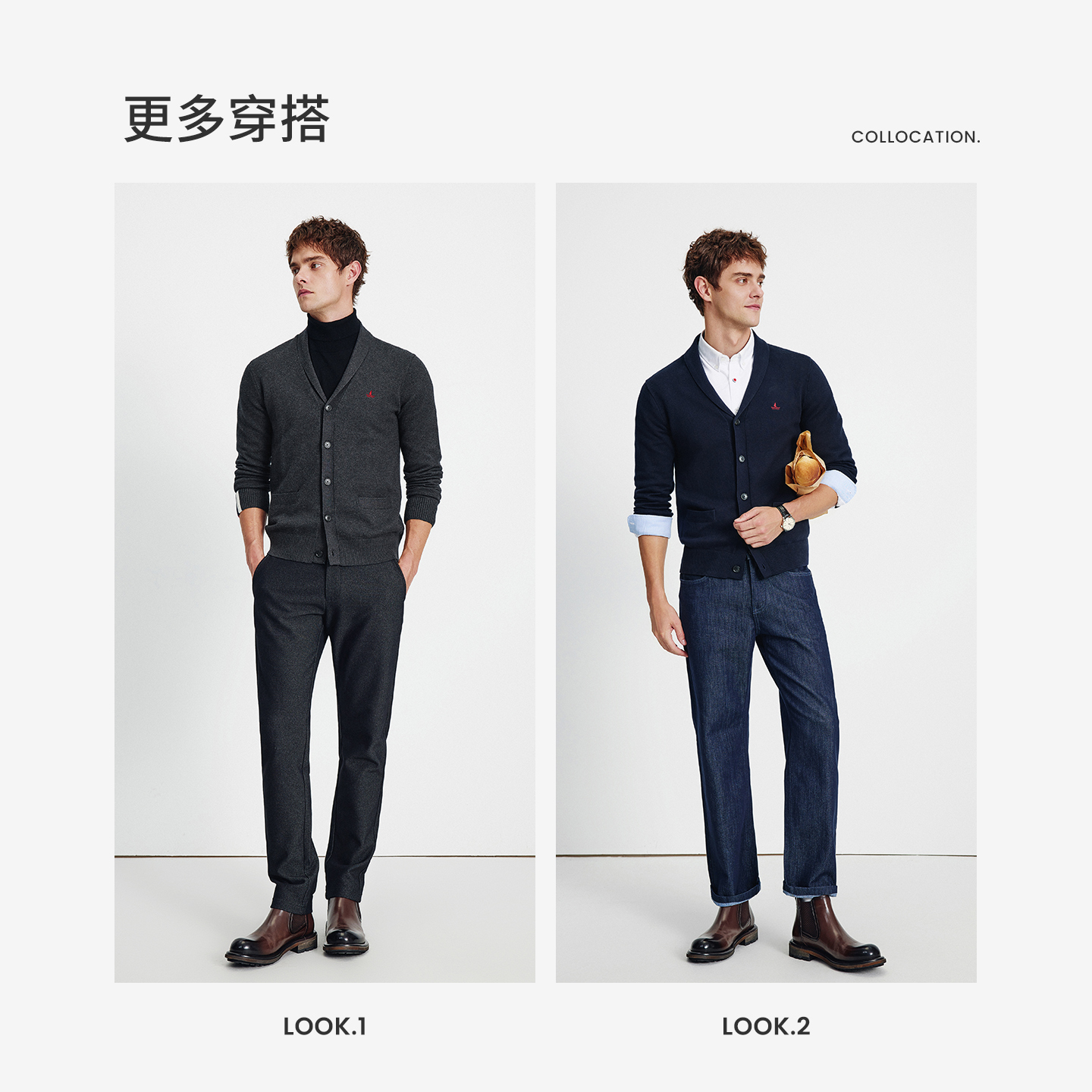 Navigare意大利小帆船老钱风青果领针织衫 男秋冬通勤毛衣外套 开衫