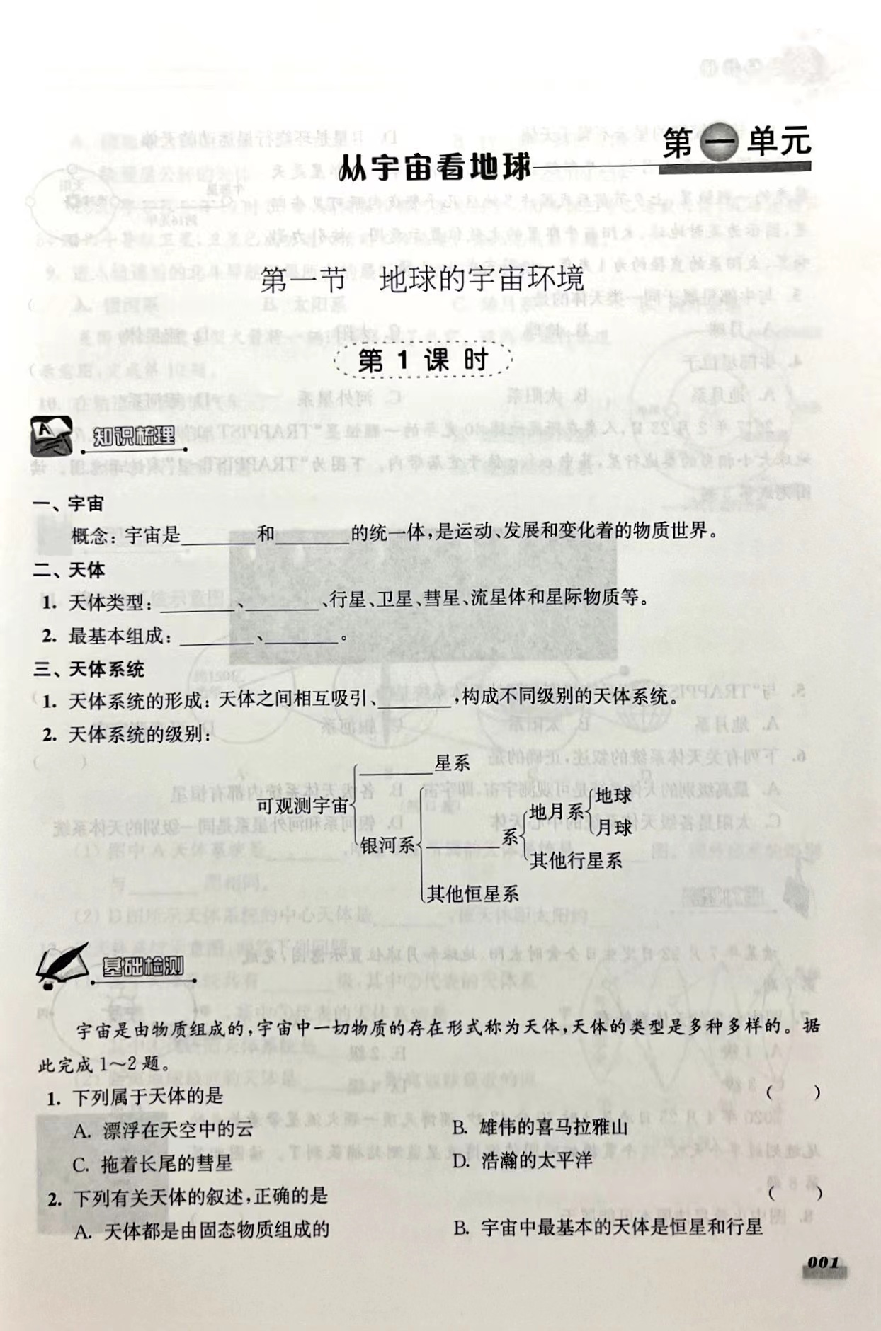 鲁教版 含参考答案同步练习课时作业本教辅书江苏凤凰教育出版 学习与评价 必修第一册新课标修订版 社必修第1册 高中地理 2023版
