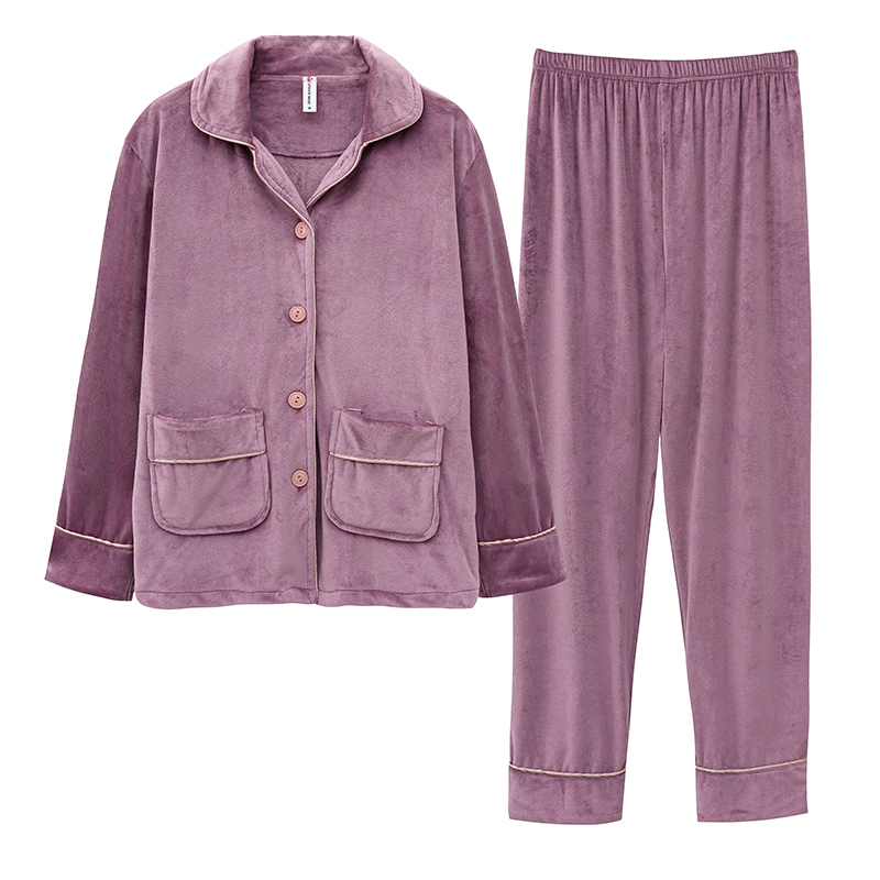 大码 春秋开衫 女士家居服 加厚珊瑚绒睡衣女冬法兰绒加绒套装 秋冬季