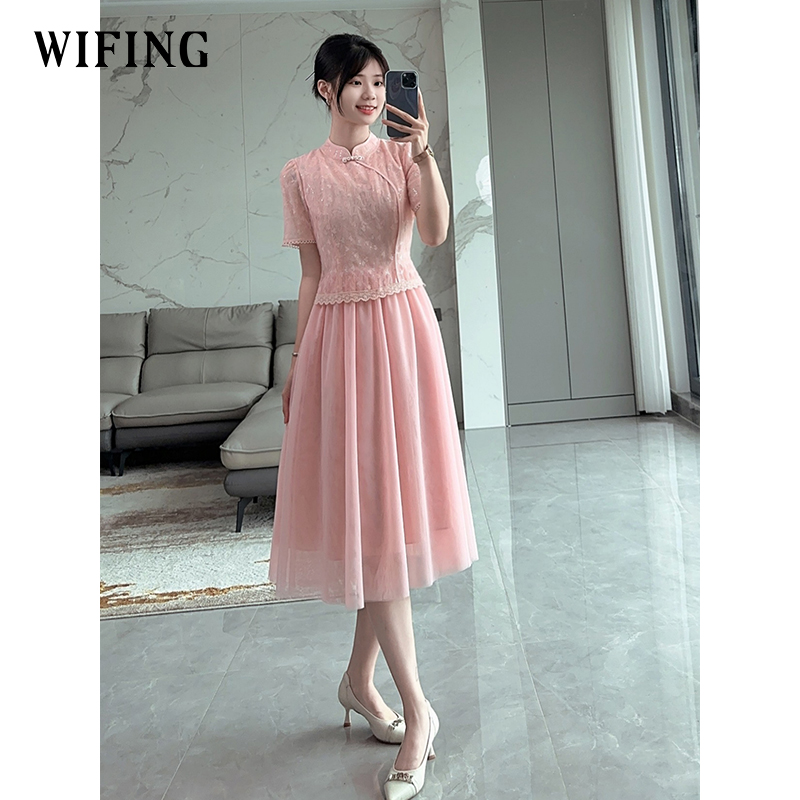 国风短袖 未风改良旗袍网纱连衣裙女夏2025夏季 新中式 女装 裙子 新款