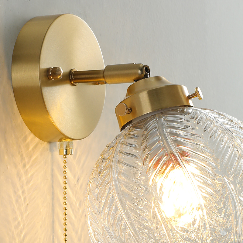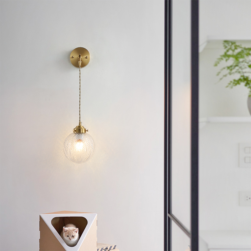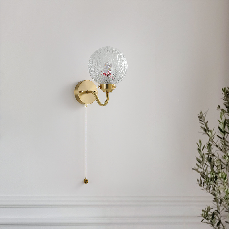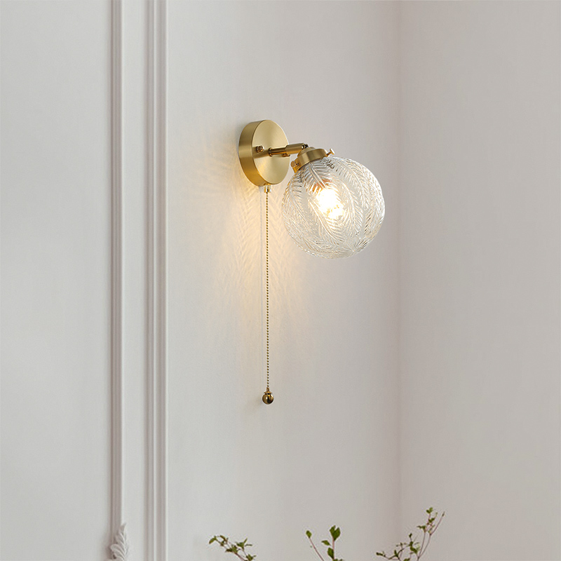 全铜圆球玻璃壁灯床头灯2022新款 走廊楼梯卧室墙壁灯拉绳带开关