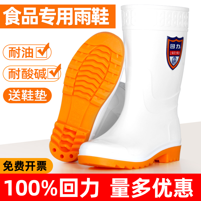 回力白色防滑耐酸碱雨鞋 钓鱼靴食品厨房专用女雨靴 男食品厂防水鞋